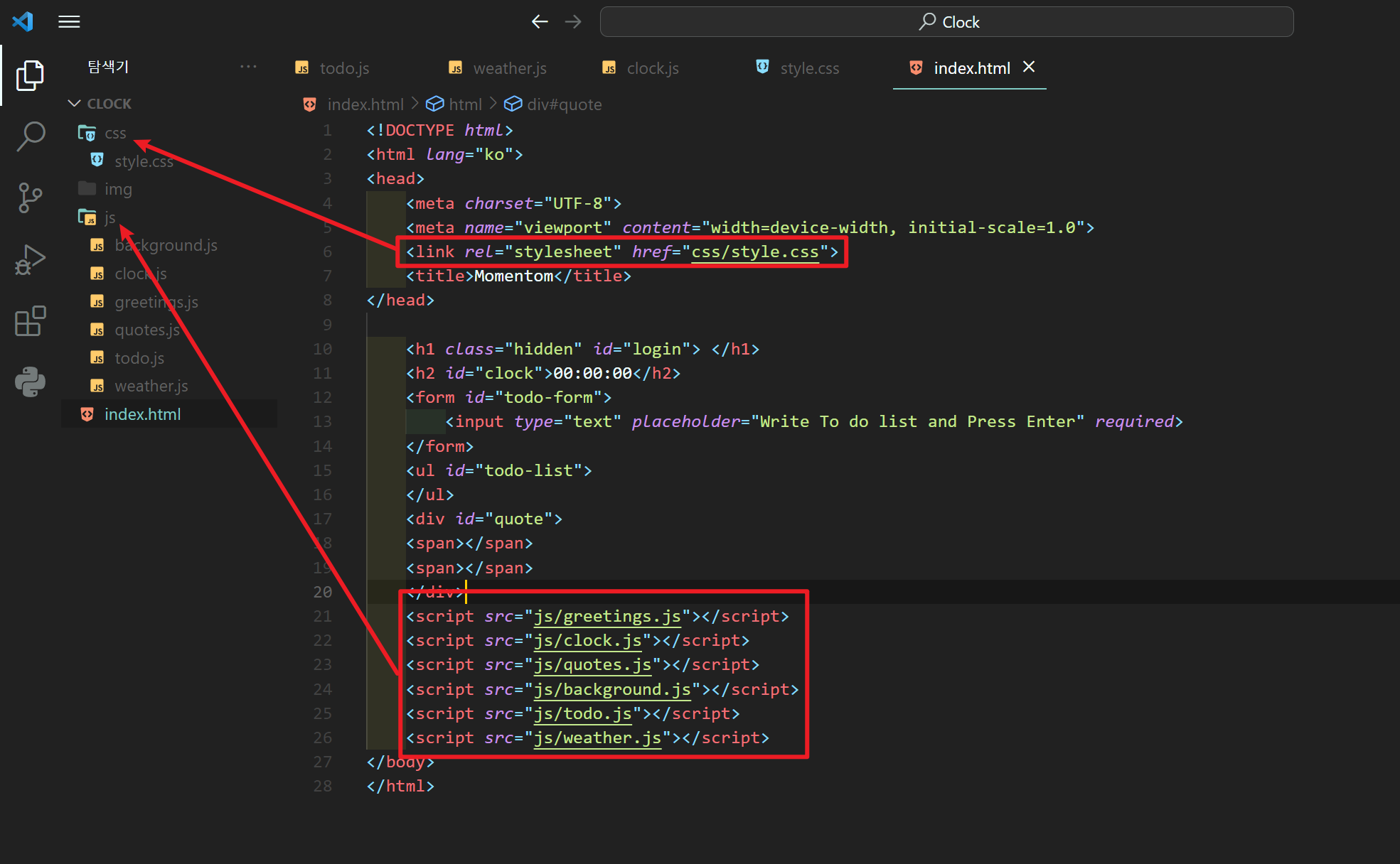 css는 link태그로 javascript는 body안에서 script태그로 사용하시면 됩니다.