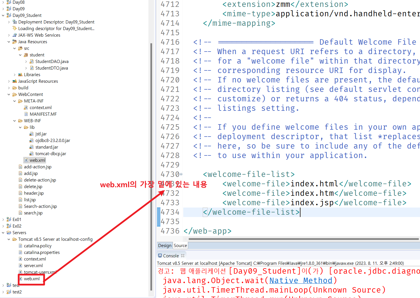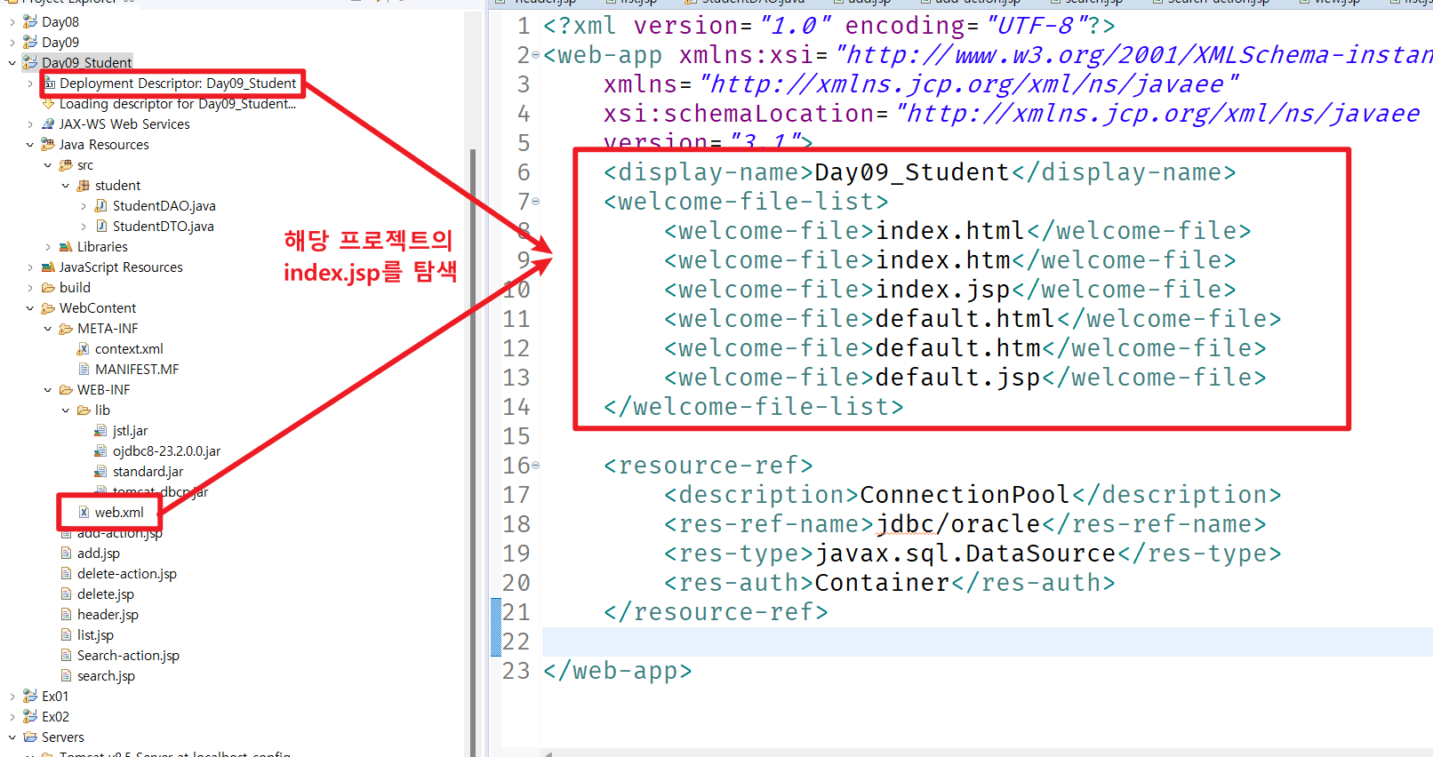 🟰프로젝트에 index파일이 있는경우 ⏬해당 프로젝트의 web.xml에서 index파일을 탐색