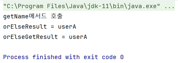 - orElse는 해당 Optional객체의 값이 null이든 아니든 항상 getName메서드를 호출 시킨다.