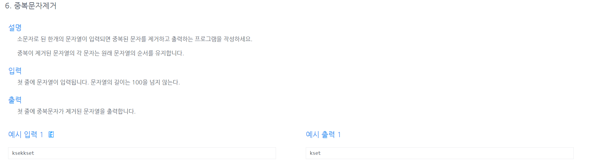 문자의 중복을 없애고 순서대로 정답에 더하면 끝!