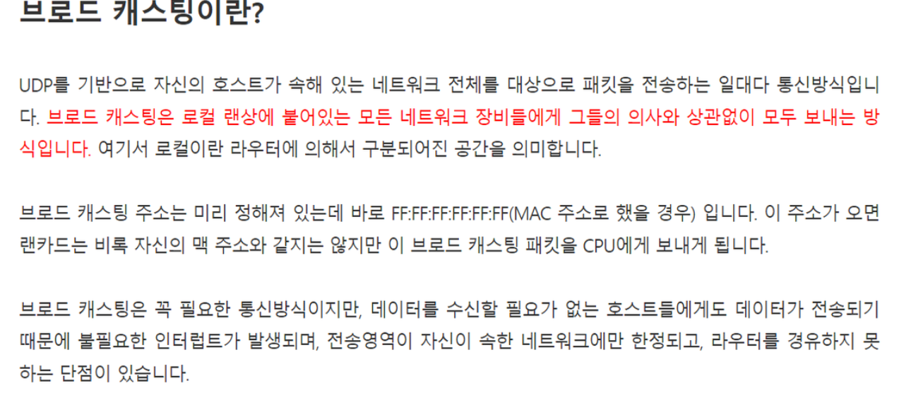 - 브로드개스트 트래픽으로 전체 성능 저하를 방지한다.