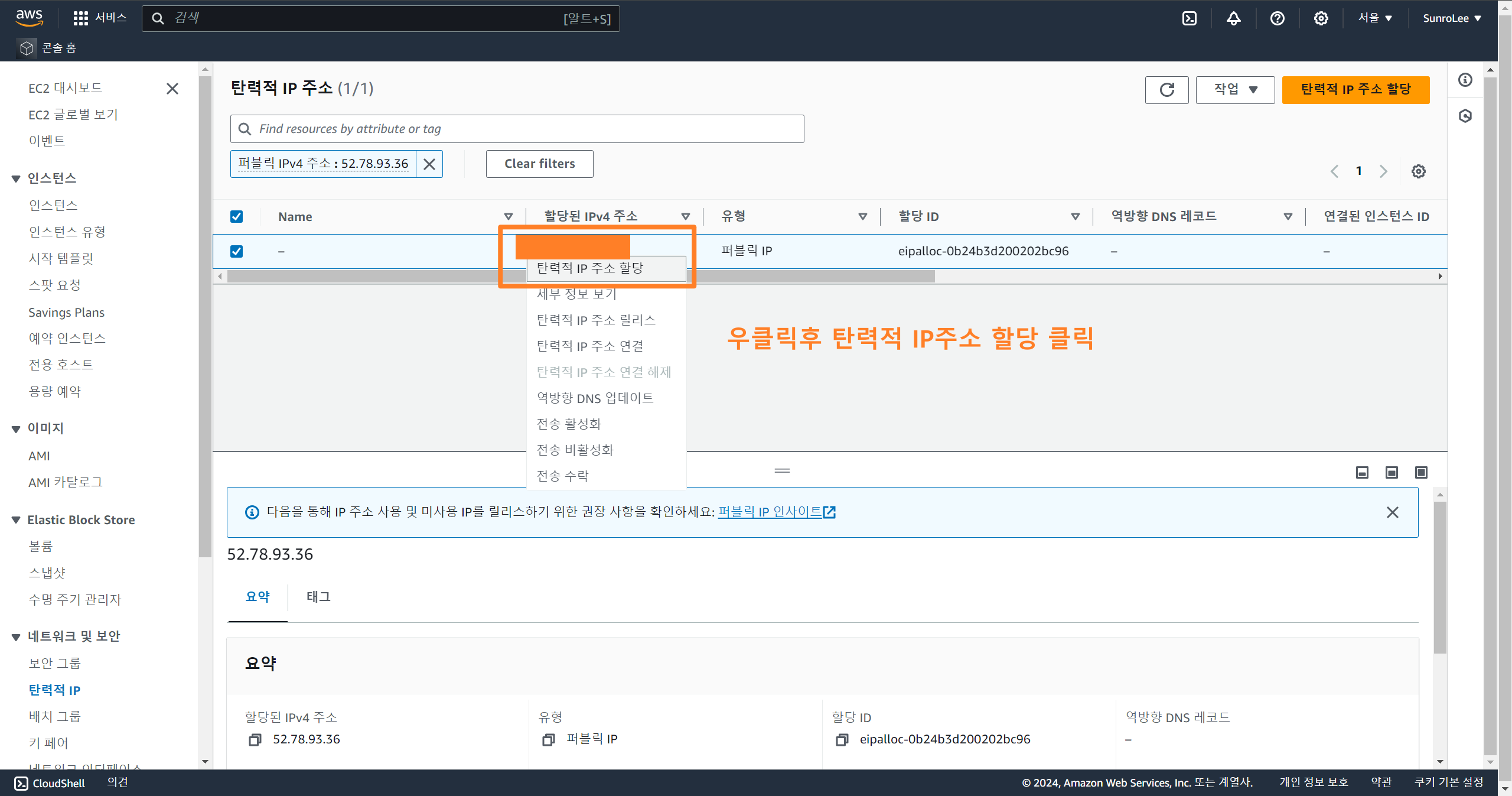 - 그래서 EIP(Elastic IP)를 쓴다!