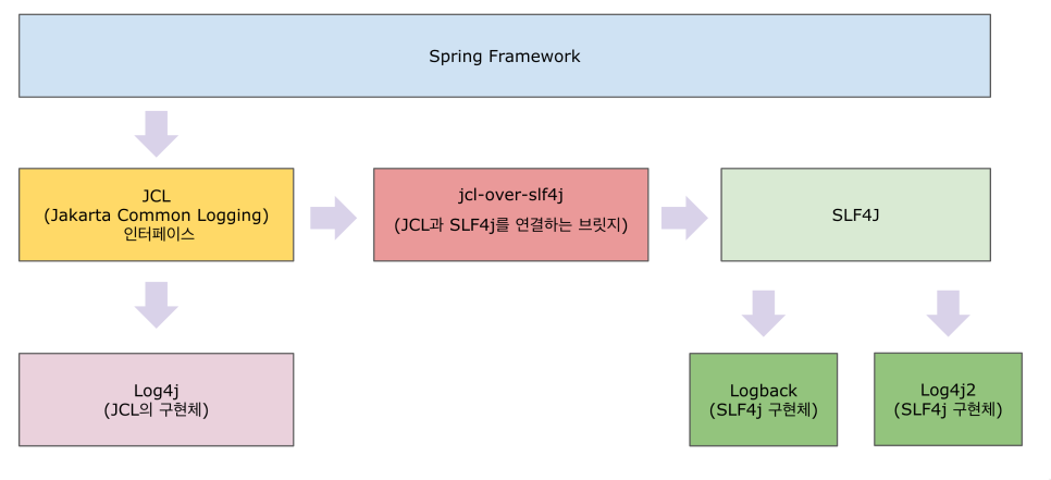 - Logback, Log4j2를 사용하기 위해 스프링 부트가 jcl-over-slf4j 라이브러리 의존성을 갖는 이유다.