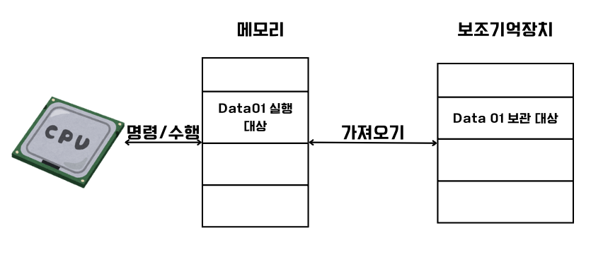 보저기억장치에 있는 메모리를 메모리(RAM)으로 가져오는 과정이 필요하다.