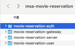 그래서 보다시피 msa-movie-reservation 이라는 리포지터리 하나에 여러 개의 모듈을 관리중이다!