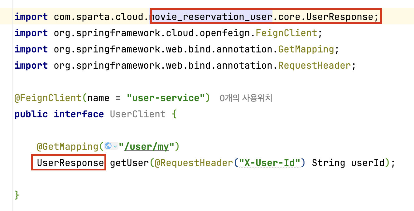 보는 바와 같이 다른 모듈인 movie_reservation_user의 UserResponse를 사용할 수 있었다.