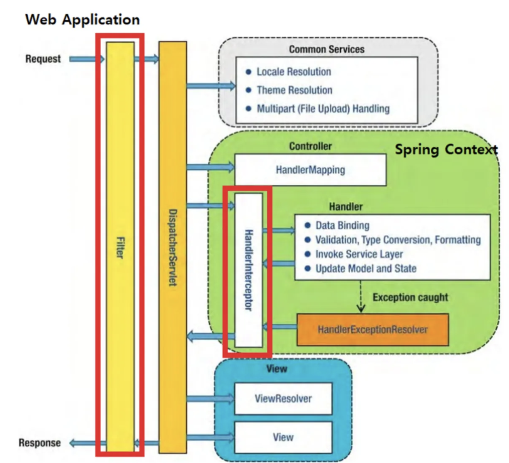 스프링 시큐리티는 DispatcherServlet이라는 서블릿 단보다 앞에 위치한다. 그 말은 Spring Context와 서블릿의 영향을 받기 전에 먼저 작동하는 필터라는 말이다. 그렇기에 우리가 정의한 GlobalExceptionHandler에서 Exception이 발생하는 것을 처리하는 과정을 Filter에서는 적용할 수 없다.