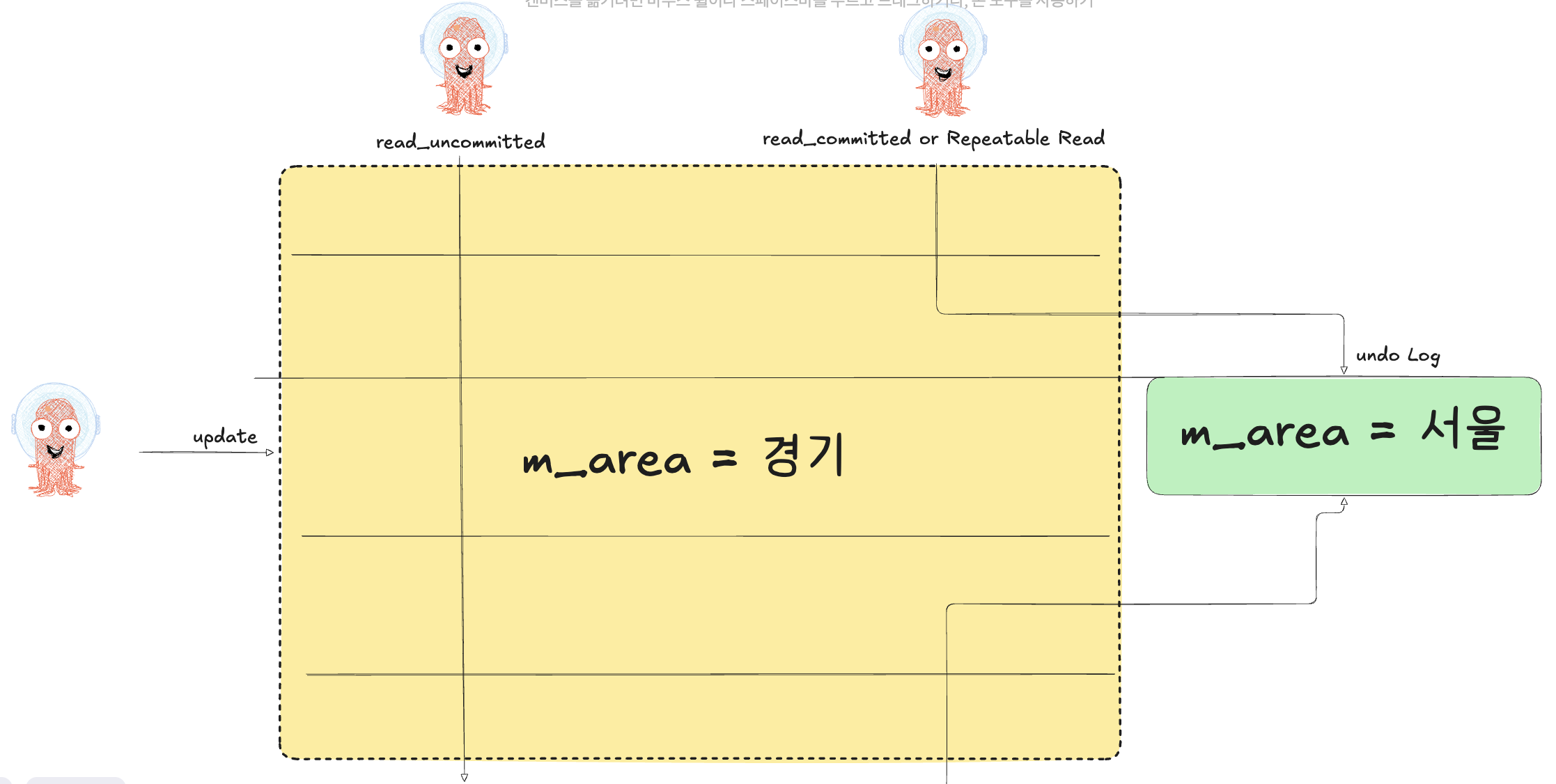 - 이 과정에서 Commit을 하게 되면 InnoDB는 더 이상 변경 작업 업싱 현재 상태를 영구적인 상태로 만든다. 하지만 롤백을 하게 되면 InnoDB는 Undo Log에 있는 백업 데이터를 InnoDB로 복구시키고, Undo 영역을 삭제 시킨다. 커밋이 된다고 Undo 영역이 바로 삭제되는 것은 아니다. 필요로 하는 트랜잭션이 없을때 영구적으로 삭제 된다.