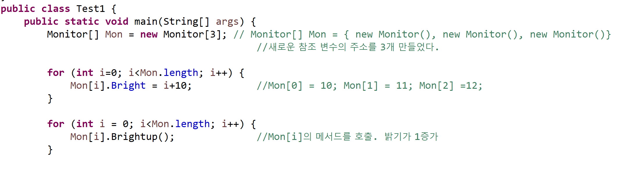 Mon에는 Bright라는 값이 있으므로 반복문을 통해 각 참조배열에 값을 넣어주었다.