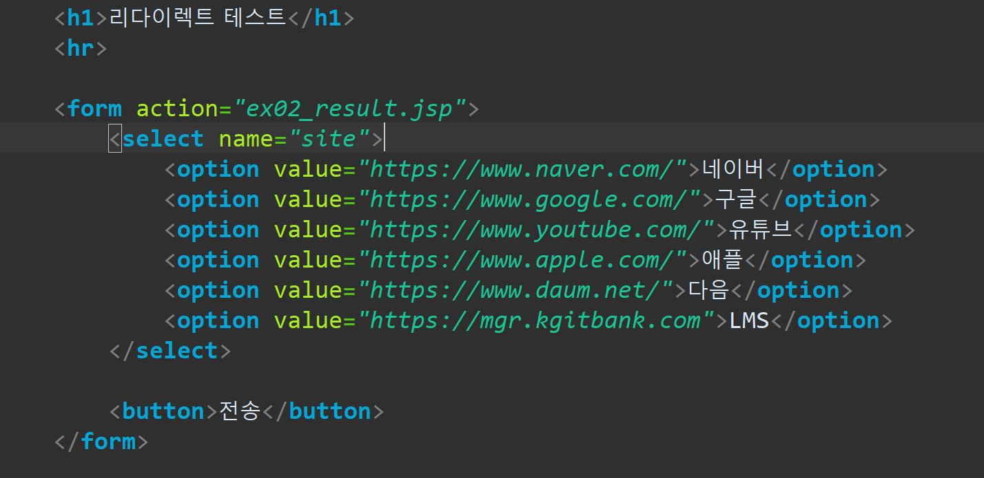 site파라미터에 있는 value값을 통해 자동으로 이동할 수 있게 만든 리다이렉션 페이지이다.