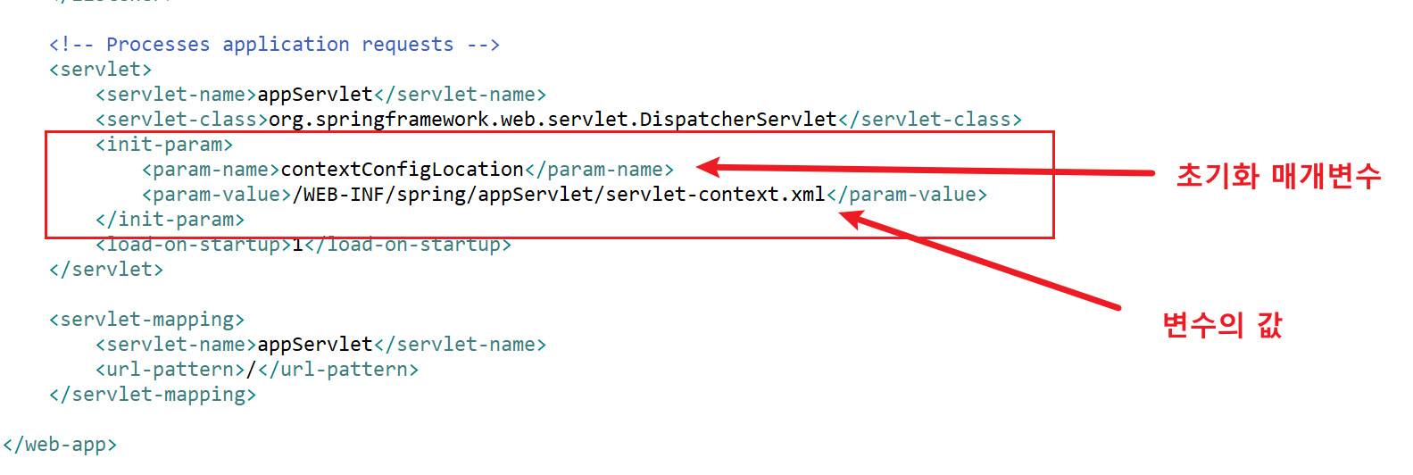 따라서 init-param은 웹 컴포넌트가 초기화될 때 필요한 매개변수를 설정하는 데 사용됩니다.